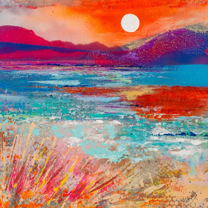 Claire Wills creates intuitive, joyful, contemporary interpretations of Scottish landscapes and seascapes by using a unique